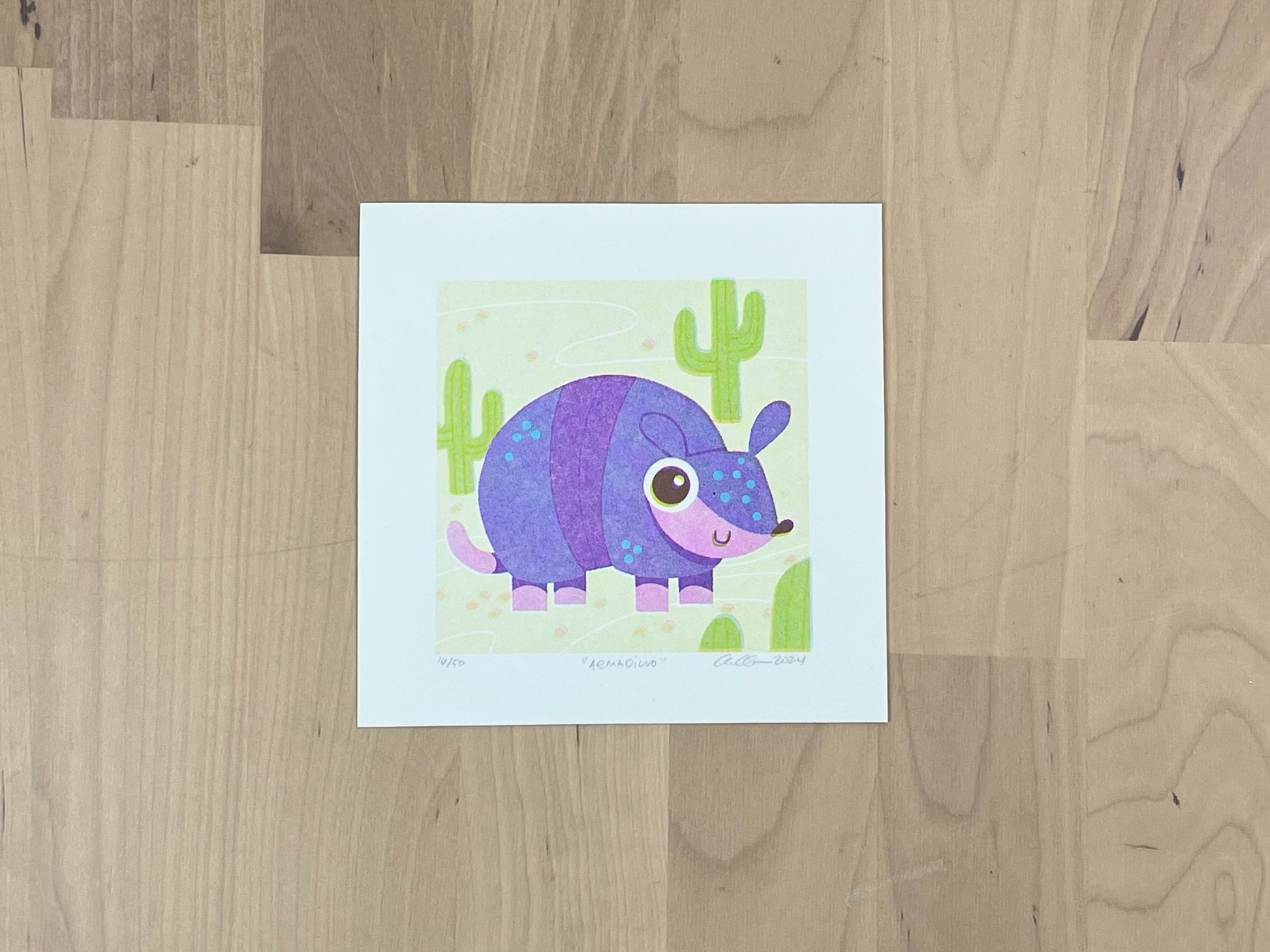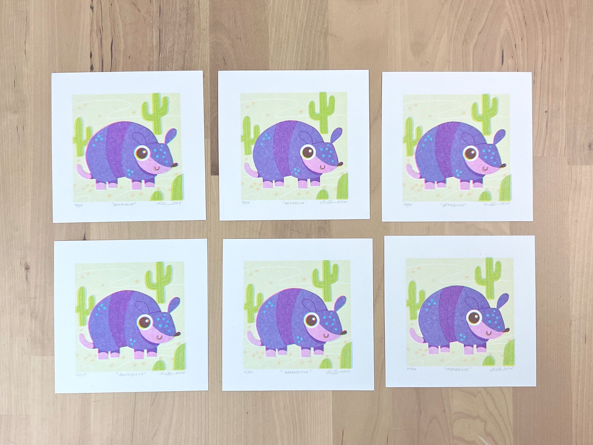 I love the texture, bright colors, and unique process riso gives these little friends. These mini prints make the perfect gift for your animal lover friends, wall art to brighten up a nursery or kid's room, or even the perfect home office "pet."