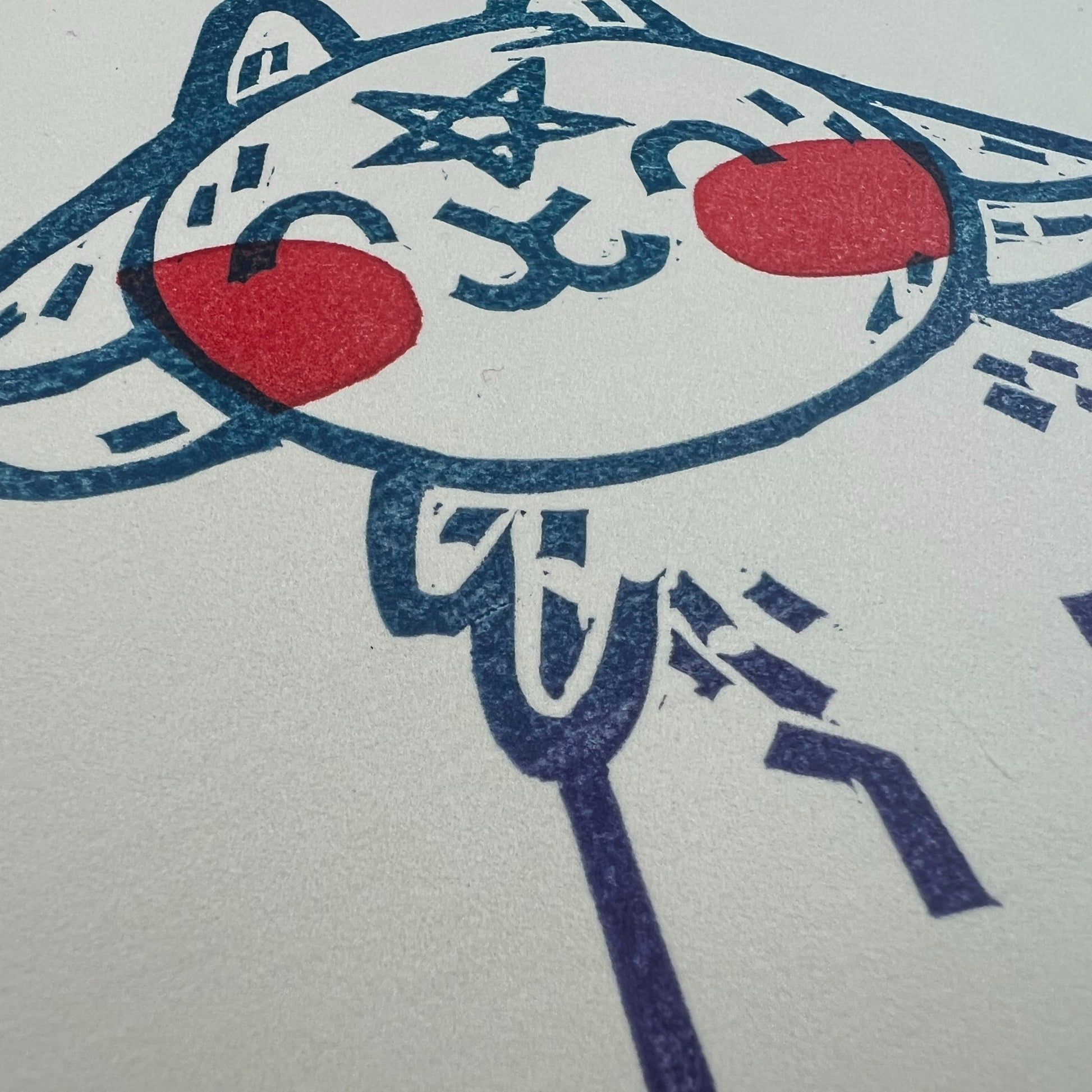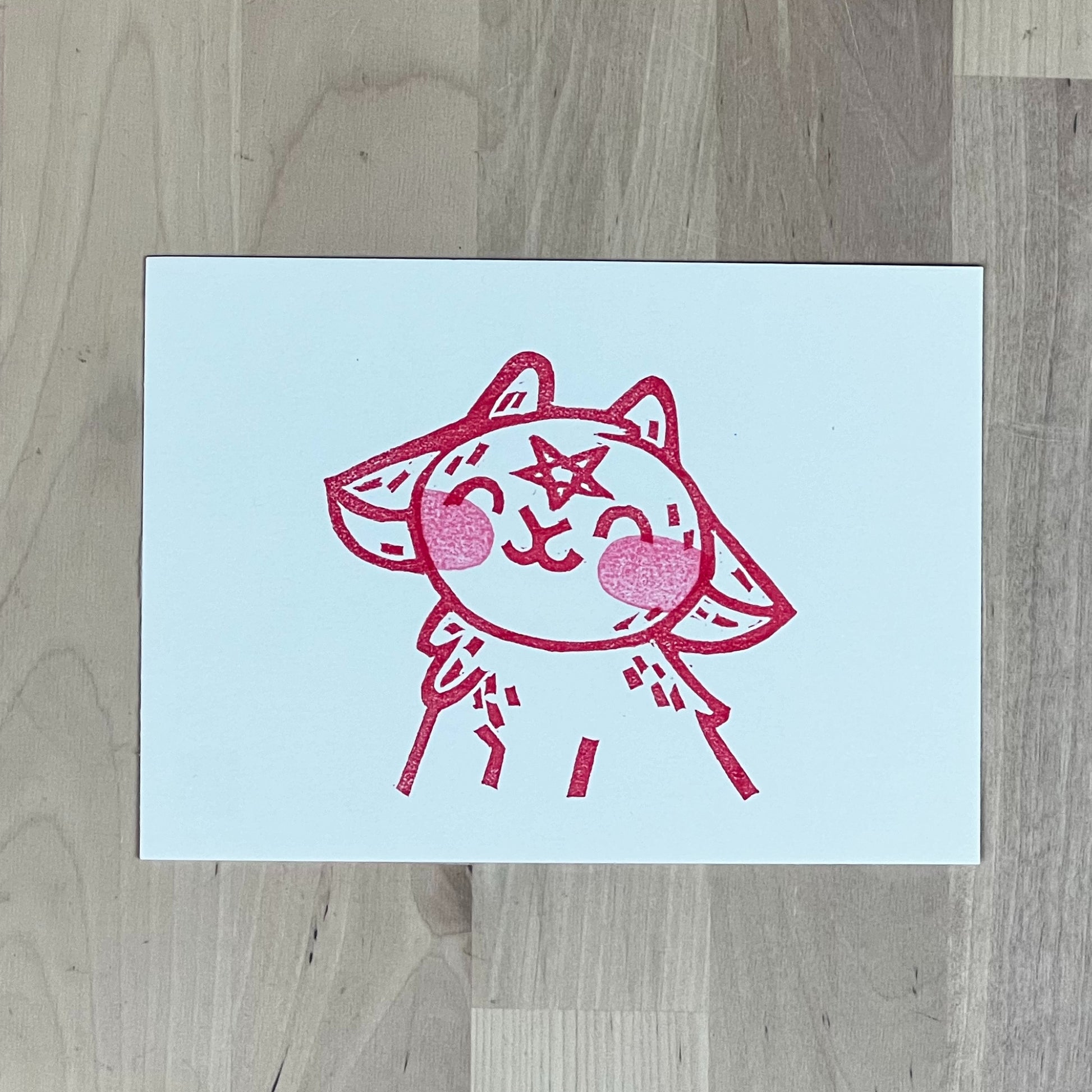 This happy little goat familiar brings the Halloween love all year long. Made from hand carved block print.