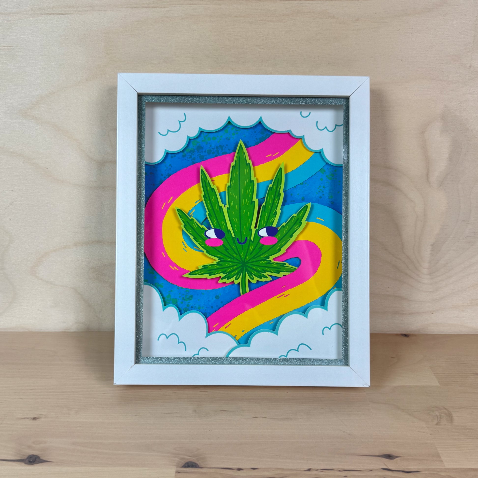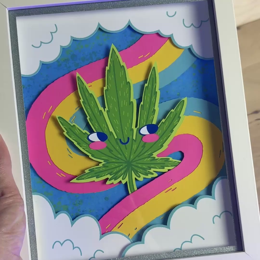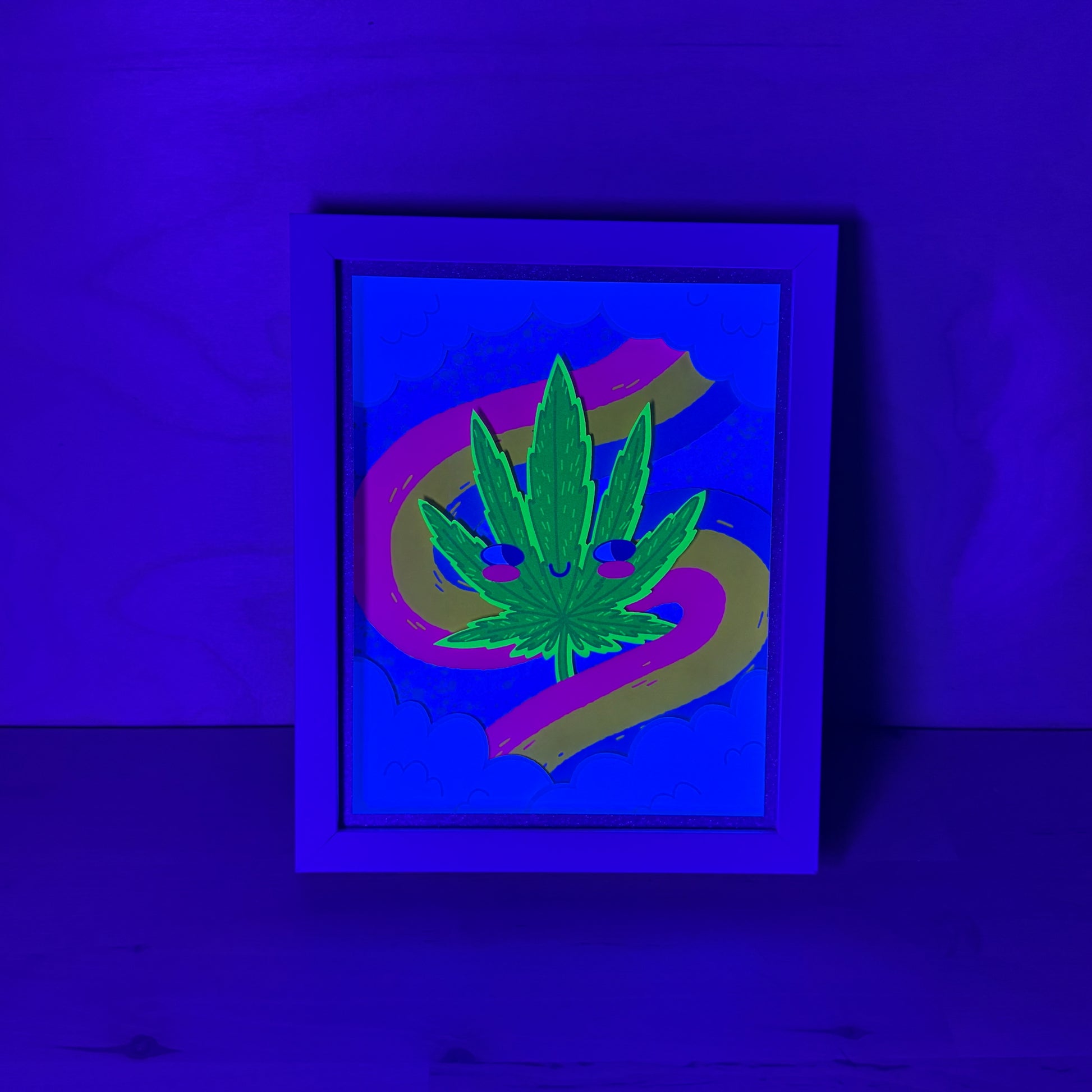 Getting sky high with this paper cut out layered art is fun. Made using UV-reactive fluorescent card stock, so make sure to turn on those backlights when you're going on your magical adventures in your living room.